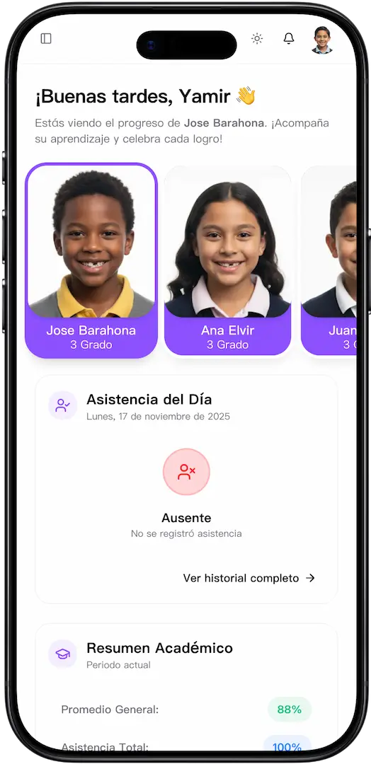 Centraliza el control académico, la asistencia, la comunicación y el bienestar estudiantil en una sola plataforma intuitiva. Toma decisiones informadas y potencia el éxito de tu comunidad educativa.